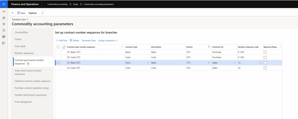 Users can generate lines for number sequences by selecting either a single branch or multiple branches. Similarly, they can choose one or several contract types. This flexibility ensures that the setup process can be tailored to the specific needs of the organization. Whether it’s managing a handful of contracts or overseeing a complex web of agreements across multiple divisions.