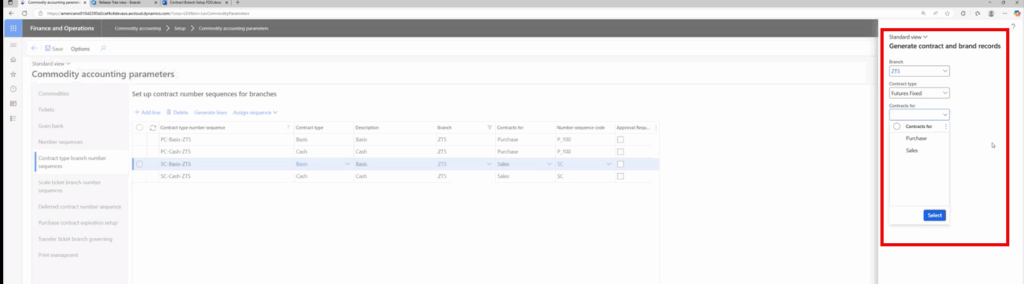 Contract Branch Setup is a configuration tool embedded within the commodity accounting module of Levridge 2025 Release 2. It allows users to generate combinations of records that can be assigned number sequence codes—essential for tracking and managing contracts efficiently.